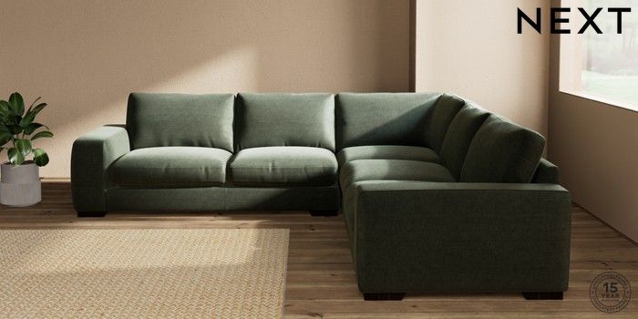 7.2.10 Houghton Deep Relaxed Sit Large Corner Sofa - Universal Luxe Chenille Mid Green Large Square Angle - Dark | Made Click here to use our website with more accessibility support, for example screen readers