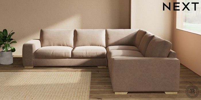7.2.10 Houghton Deep Relaxed Sit Large Corner Sofa - Universal Luxe Chenille Mid Natural Large Square Angle - Light | Made Click here to use our website with more accessibility support, for example screen readers