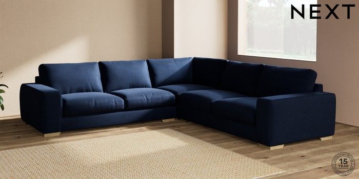 7.2.10 Houghton Deep Relaxed Sit Large Corner Sofa - Universal Luxe Chenille Navy Blue Large Square Angle - Light | Made Click here to use our website with more accessibility support, for example screen readers