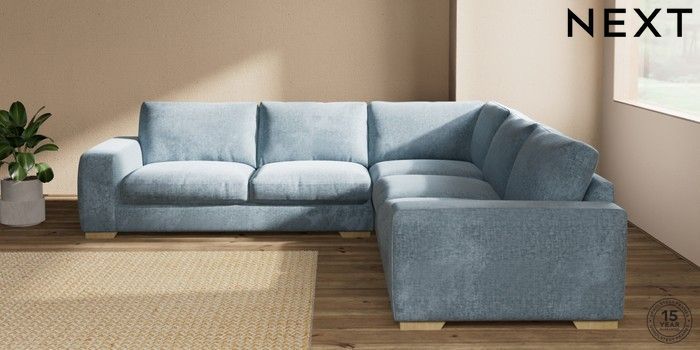 7.2.10 Houghton Deep Relaxed Sit Large Corner Sofa - Universal Plush Chenille Light Blue Large Square Angle - Light | Made Click here to use our website with more accessibility support, for example screen readers