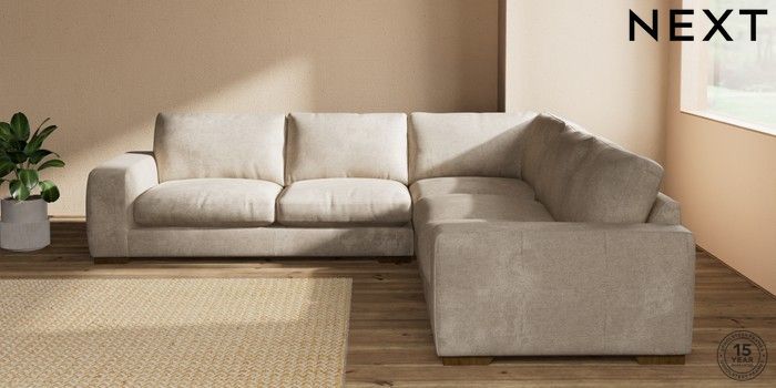 7.2.10 Houghton Deep Relaxed Sit Large Corner Sofa - Universal Plush Chenille Light Natural Large Square Angle - Mid | Made Click here to use our website with more accessibility support, for example screen readers