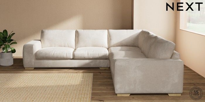 7.2.10 Houghton Deep Relaxed Sit Large Corner Sofa - Universal Plush Chenille Oyster Large Square Angle - Light | Made Click here to use our website with more accessibility support, for example screen readers