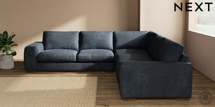 7.2.10 Houghton Deep Relaxed Sit Large Corner Sofa - Universal Plush Chenille Slate Blue Large Square Angle - Mid | Made Click here to use our website with more accessibility support, for example screen readers