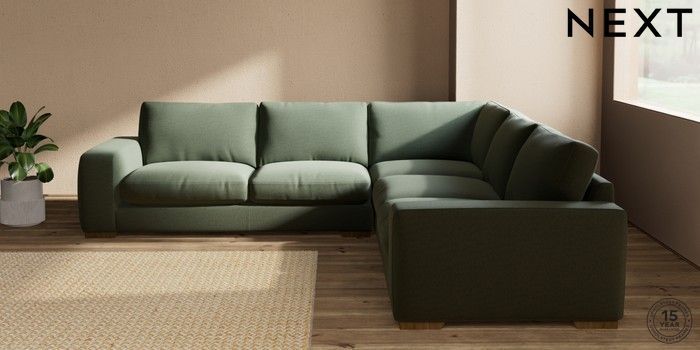 7.2.10 Houghton Deep Relaxed Sit Large Corner Sofa - Universal Relaxed Linen Look Dark Green Large Square Angle - Mid | Made Click here to use our website with more accessibility support, for example screen readers