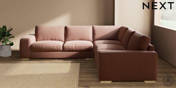 7.2.10 Houghton Deep Relaxed Sit Large Corner Sofa - Universal Relaxed Linen Look Light Rust Brown Large Square Angle - Light | Made Click here to use our website with more accessibility support, for example screen readers