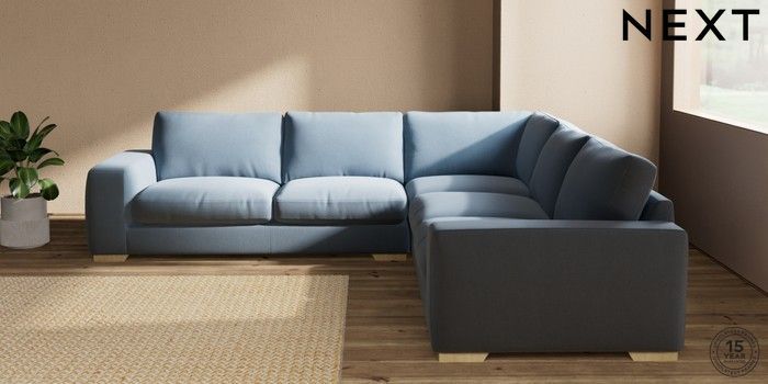 7.2.10 Houghton Deep Relaxed Sit Large Corner Sofa - Universal Relaxed Linen Look Mid Blue Large Square Angle - Light | Made Click here to use our website with more accessibility support, for example screen readers