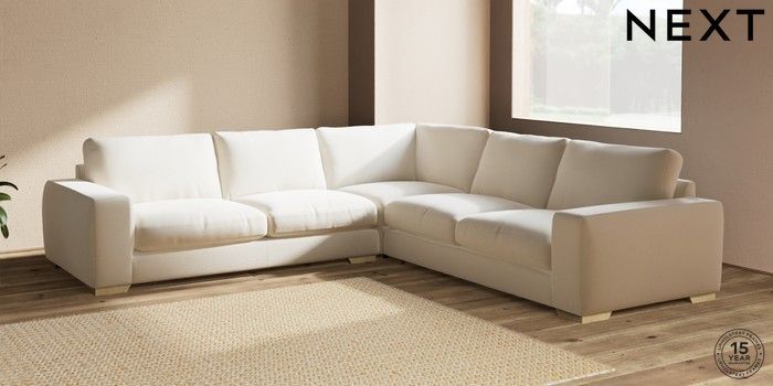 7.2.10 Houghton Deep Relaxed Sit Large Corner Sofa - Universal Ripple Chenille Oyster Large Square Angle - Light | Made Click here to use our website with more accessibility support, for example screen readers