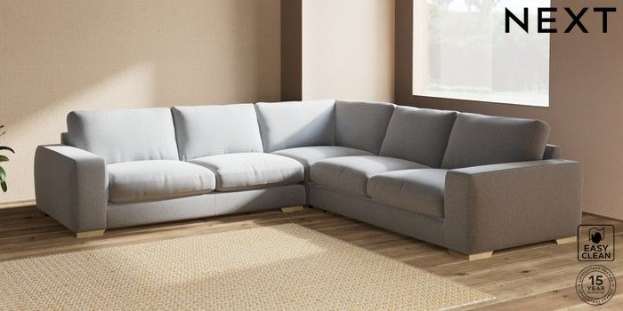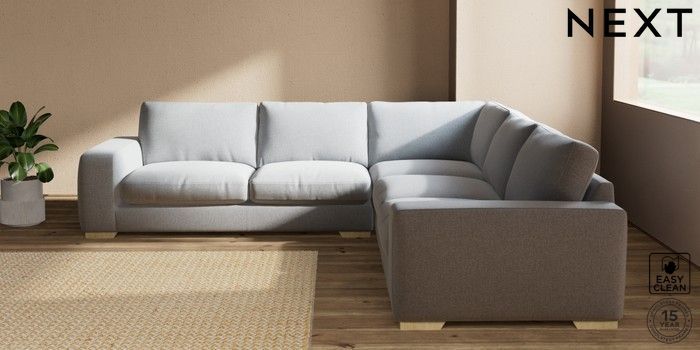7.2.10 Houghton Deep Relaxed Sit Large Corner Sofa - Universal Tweedy Blend Easy Clean Light Silver Grey Large Square Angle - Light | Made Click here to use our website with more accessibility support, for example screen readers