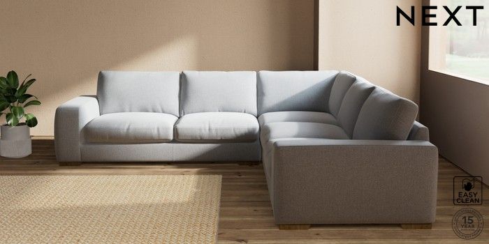 7.2.10 Houghton Deep Relaxed Sit Large Corner Sofa - Universal Tweedy Blend Easy Clean Light Silver Grey Large Square Angle - Mid | Made Click here to use our website with more accessibility support, for example screen readers