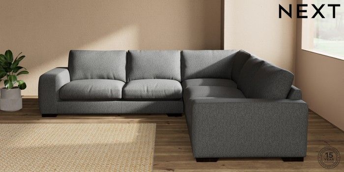 7.2.10 Houghton Deep Relaxed Sit Large Corner Sofa - Universal Tweedy Chenille Dark Grey Large Square Angle - Dark | Made Click here to use our website with more accessibility support, for example screen readers