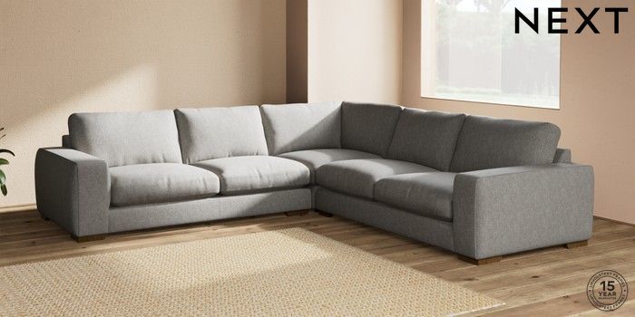 7.2.10 Houghton Deep Relaxed Sit Large Corner Sofa - Universal Tweedy Chenille Mid Grey Large Square Angle - Mid | Made Click here to use our website with more accessibility support, for example screen readers