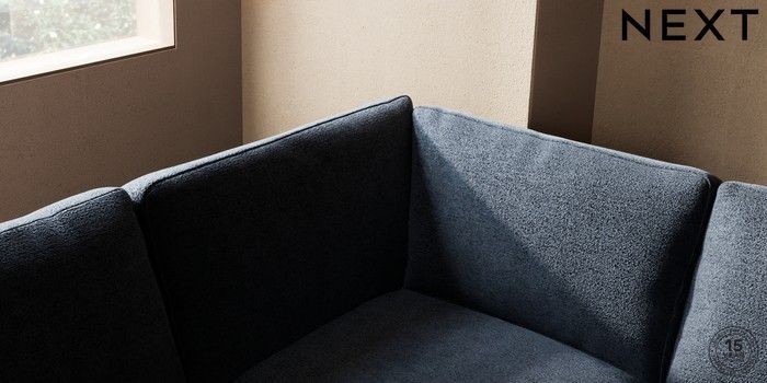 7.2.10 Houghton Deep Relaxed Sit Large Open End Corner Chaise - Left Hand Boucle Chenille Dark Slate Blue Large Square Angle - Brushed Brass | Made Click here to use our website with more accessibility support, for example screen readers
