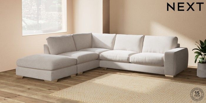 7.2.10 Houghton Deep Relaxed Sit Large Open End Corner Chaise - Left Hand Chunky Chenille Oyster Large Square Angle - Chrome Metal | Made Click here to use our website with more accessibility support, for example screen readers