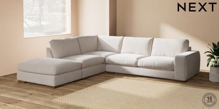 7.2.10 Houghton Deep Relaxed Sit Large Open End Corner Chaise - Left Hand Chunky Chenille Oyster Large Square Angle - Mid | Made Click here to use our website with more accessibility support, for example screen readers