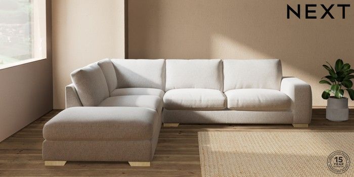 7.2.10 Houghton Deep Relaxed Sit Large Open End Corner Chaise - Left Hand Chunky Marl Oyster Large Square Angle - Light | Made Click here to use our website with more accessibility support, for example screen readers