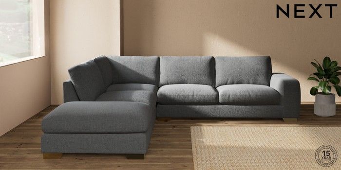 7.2.10 Houghton Deep Relaxed Sit Large Open End Corner Chaise - Left Hand Chunky Texture Dark Grey Large Square Angle - Brushed Brass | Made Click here to use our website with more accessibility support, for example screen readers