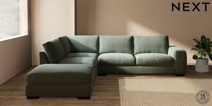 7.2.10 Houghton Deep Relaxed Sit Large Open End Corner Chaise - Left Hand Chunky Texture Mid Forest Green Large Square Angle - Dark | Made Click here to use our website with more accessibility support, for example screen readers