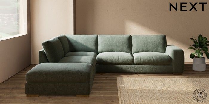7.2.10 Houghton Deep Relaxed Sit Large Open End Corner Chaise - Left Hand Chunky Texture Mid Forest Green Large Square Angle - Mid | Made Click here to use our website with more accessibility support, for example screen readers
