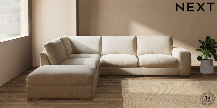 7.2.10 Houghton Deep Relaxed Sit Large Open End Corner Chaise - Left Hand Chunky Weave Cream Large Square Angle - Mid | Made Click here to use our website with more accessibility support, for example screen readers