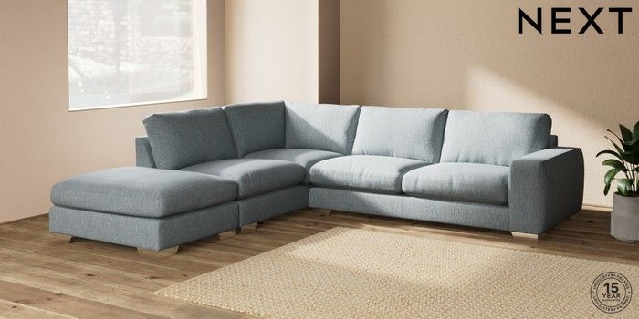 7.2.10 Houghton Deep Relaxed Sit Large Open End Corner Chaise - Left Hand Chunky Weave Mid Blue Large Square Angle - Chrome Metal | Made Click here to use our website with more accessibility support, for example screen readers
