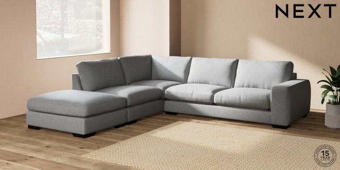 7.2.10 Houghton Deep Relaxed Sit Large Open End Corner Chaise - Left Hand Chunky Weave Mid Grey Large Square Angle - Dark | Made Click here to use our website with more accessibility support, for example screen readers