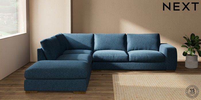 7.2.10 Houghton Deep Relaxed Sit Large Open End Corner Chaise - Left Hand Cotswold Chenille Dark Blue Large Square Angle - Mid | Made Click here to use our website with more accessibility support, for example screen readers
