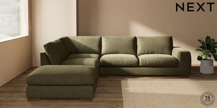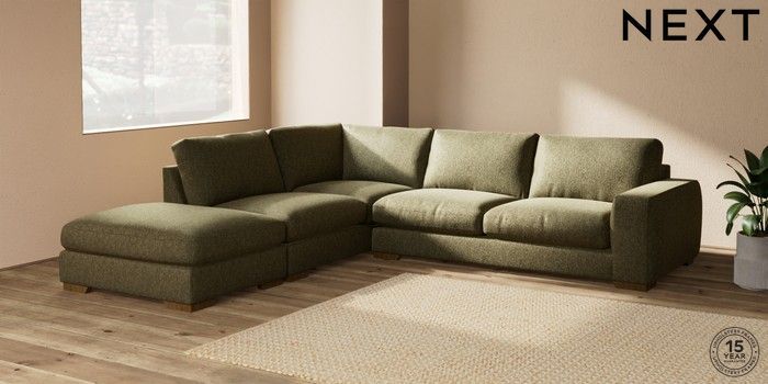 7.2.10 Houghton Deep Relaxed Sit Large Open End Corner Chaise - Left Hand Cotswold Chenille Dark Green Large Square Angle - Mid | Made Click here to use our website with more accessibility support, for example screen readers