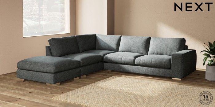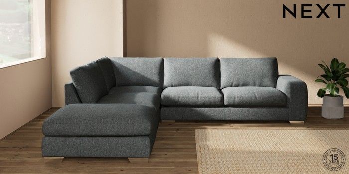 7.2.10 Houghton Deep Relaxed Sit Large Open End Corner Chaise - Left Hand Cotswold Chenille Dark Grey Large Square Angle - Chrome Metal | Made Click here to use our website with more accessibility support, for example screen readers