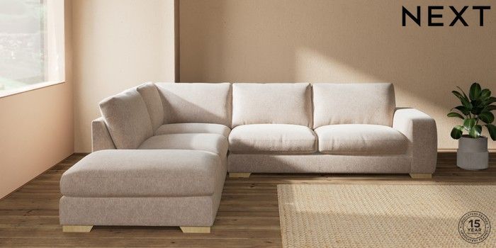 7.2.10 Houghton Deep Relaxed Sit Large Open End Corner Chaise - Left Hand Cotswold Chenille Light Natural Large Square Angle - Light | Made Click here to use our website with more accessibility support, for example screen readers
