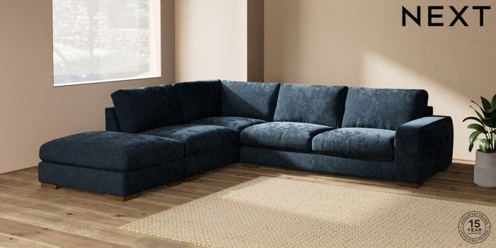 7.2.10 Houghton Deep Relaxed Sit Large Open End Corner Chaise - Left Hand Distressed Velour Midnight Blue Large Square Angle - Mid | Made Click here to use our website with more accessibility support, for example screen readers