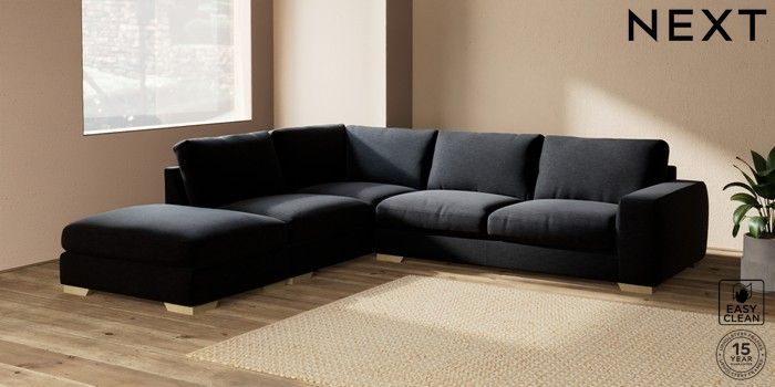 7.2.10 Houghton Deep Relaxed Sit Large Open End Corner Chaise - Left Hand Fine Chenille Easy Clean Black Large Square Angle - Light | Made Click here to use our website with more accessibility support, for example screen readers