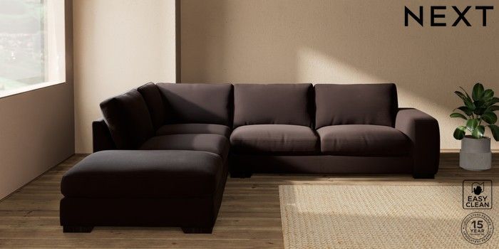 7.2.10 Houghton Deep Relaxed Sit Large Open End Corner Chaise - Left Hand Fine Chenille Easy Clean Chocolate Brown Large Square Angle - Dark | Made Click here to use our website with more accessibility support, for example screen readers