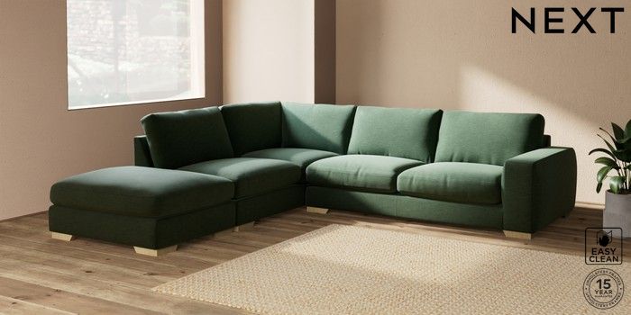 7.2.10 Houghton Deep Relaxed Sit Large Open End Corner Chaise - Left Hand Fine Chenille Easy Clean Mid Khaki Green Large Square Angle - Light | Made Click here to use our website with more accessibility support, for example screen readers