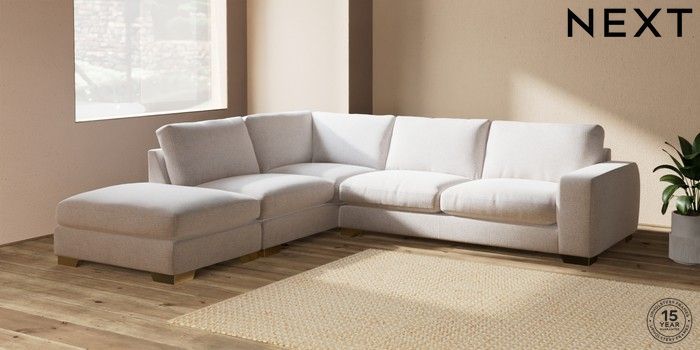 7.2.10 Houghton Deep Relaxed Sit Large Open End Corner Chaise - Left Hand Multi Weave Oyster Large Square Angle - Brushed Brass | Made Click here to use our website with more accessibility support, for example screen readers