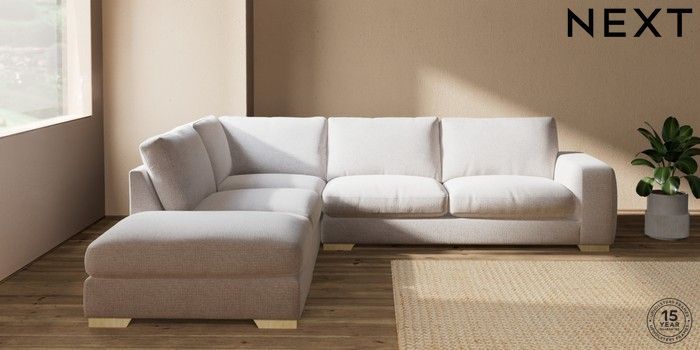 7.2.10 Houghton Deep Relaxed Sit Large Open End Corner Chaise - Left Hand Multi Weave Oyster Large Square Angle - Light | Made Click here to use our website with more accessibility support, for example screen readers
