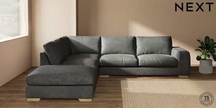 7.2.10 Houghton Deep Relaxed Sit Large Open End Corner Chaise - Left Hand Plush Chenille Dark Grey Large Square Angle - Light | Made Click here to use our website with more accessibility support, for example screen readers