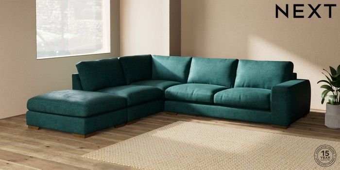 7.2.10 Houghton Deep Relaxed Sit Large Open End Corner Chaise - Left Hand Plush Chenille Dark Teal Green Large Square Angle - Mid | Made Click here to use our website with more accessibility support, for example screen readers