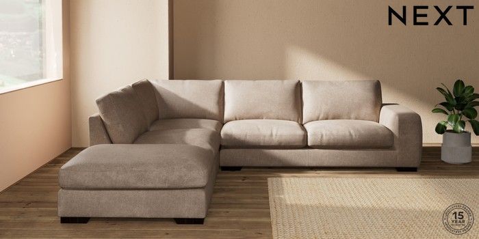 7.2.10 Houghton Deep Relaxed Sit Large Open End Corner Chaise - Left Hand Plush Chenille Mid Natural Large Square Angle - Dark | Made Click here to use our website with more accessibility support, for example screen readers