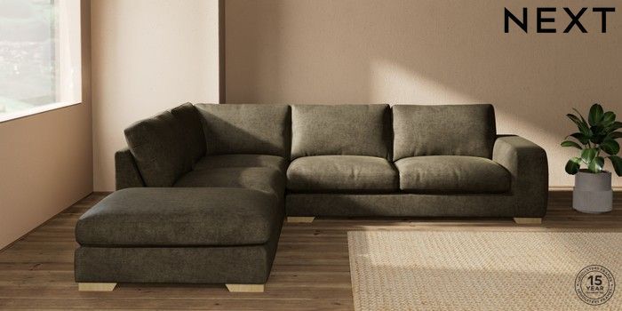 7.2.10 Houghton Deep Relaxed Sit Large Open End Corner Chaise - Left Hand Plush Chenille Moss Green Large Square Angle - Light | Made Click here to use our website with more accessibility support, for example screen readers