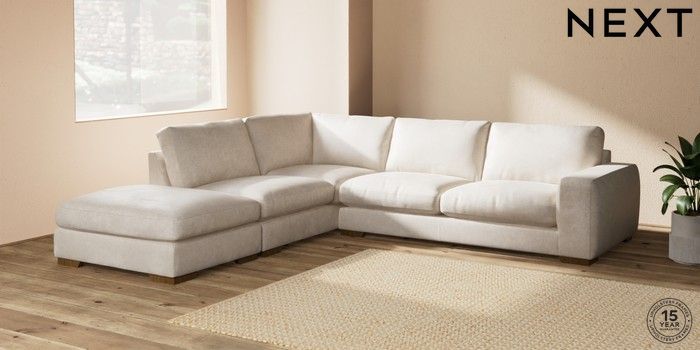 7.2.10 Houghton Deep Relaxed Sit Large Open End Corner Chaise - Left Hand Plush Chenille Oyster Large Square Angle - Mid | Made Click here to use our website with more accessibility support, for example screen readers