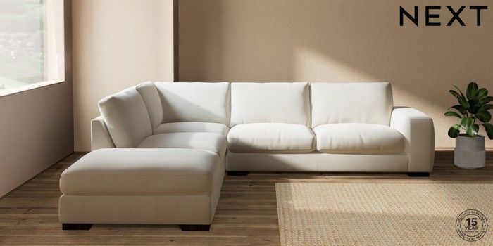7.2.10 Houghton Deep Relaxed Sit Large Open End Corner Chaise - Left Hand Relaxed Linen Look Oyster Large Square Angle - Dark | Made Click here to use our website with more accessibility support, for example screen readers