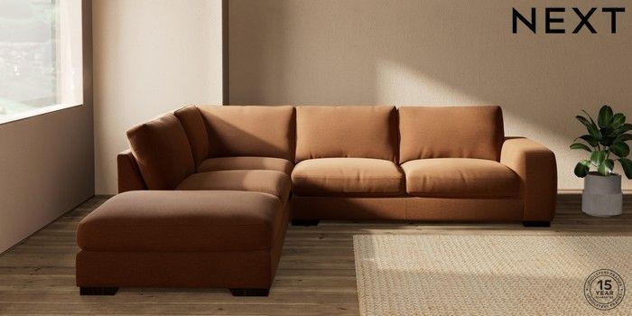 7.2.10 Houghton Deep Relaxed Sit Large Open End Corner Chaise - Left Hand Ripple Chenille Mid Rust Brown Large Square Angle - Dark | Made Click here to use our website with more accessibility support, for example screen readers