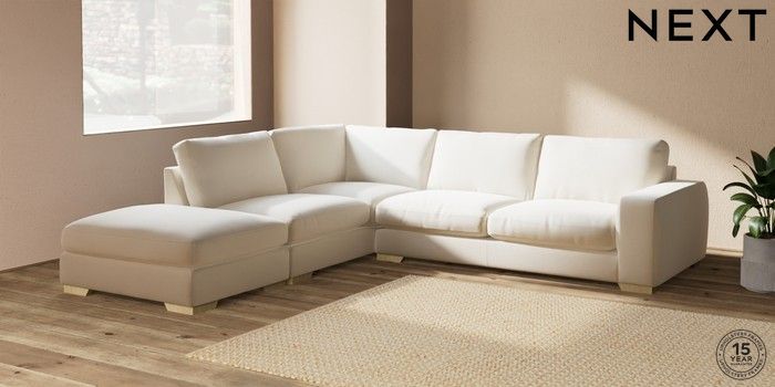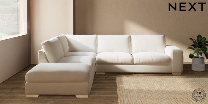 7.2.10 Houghton Deep Relaxed Sit Large Open End Corner Chaise - Left Hand Ripple Chenille Oyster Large Square Angle - Light | Made Click here to use our website with more accessibility support, for example screen readers
