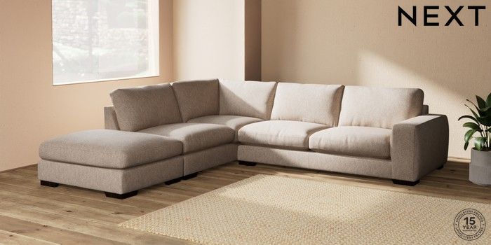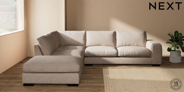 7.2.10 Houghton Deep Relaxed Sit Large Open End Corner Chaise - Left Hand Tweedy Chenille Mid Natural Large Square Angle - Dark | Made Click here to use our website with more accessibility support, for example screen readers