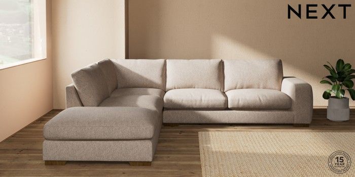 7.2.10 Houghton Deep Relaxed Sit Large Open End Corner Chaise - Left Hand Tweedy Chenille Mid Natural Large Square Angle - Mid | Made Click here to use our website with more accessibility support, for example screen readers