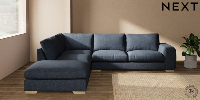 7.2.10 Houghton Deep Relaxed Sit Large Open End Corner Chaise - Left Hand Tweedy Chenille Navy Blue Large Square Angle - Light | Made Click here to use our website with more accessibility support, for example screen readers