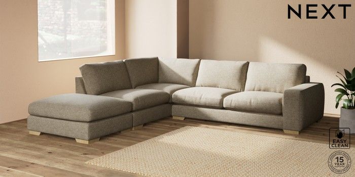 7.2.10 Houghton Deep Relaxed Sit Large Open End Corner Chaise - Left Hand Woven Chenille Easy Clean Mid Natural Large Square Angle - Light | Made Click here to use our website with more accessibility support, for example screen readers
