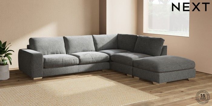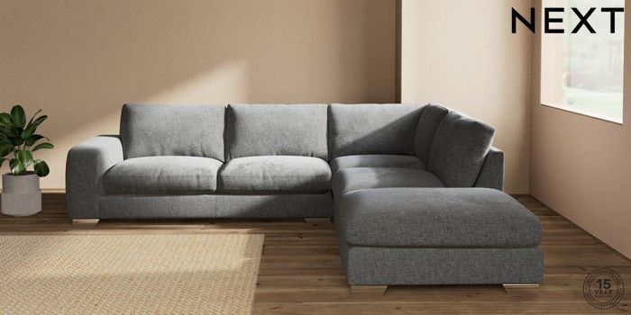 7.2.10 Houghton Deep Relaxed Sit Large Open End Corner Chaise - Right Hand Chunky Chenille Dark Grey Large Square Angle - Chrome Metal | Made Click here to use our website with more accessibility support, for example screen readers