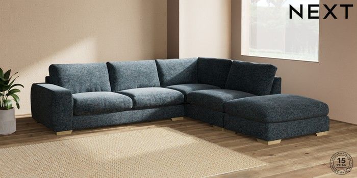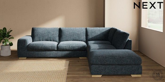 7.2.10 Houghton Deep Relaxed Sit Large Open End Corner Chaise - Right Hand Chunky Chenille Dark Navy Blue Large Square Angle - Light | Made Click here to use our website with more accessibility support, for example screen readers