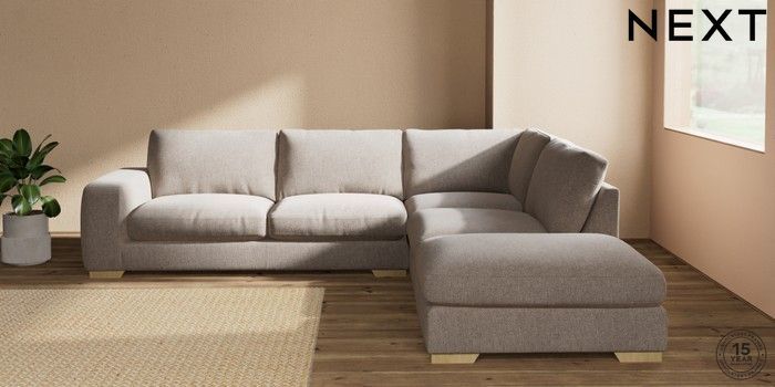 7.2.10 Houghton Deep Relaxed Sit Large Open End Corner Chaise - Right Hand Chunky Chenille Light Dove Large Square Angle - Light | Made Click here to use our website with more accessibility support, for example screen readers